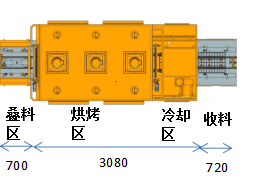 1.機器尺寸(mm):L3080*W1400*H21002.台麵高(gāo)度:960mm±30mm3.最大/最小烤盤尺寸:490*366mm/400*330mm4.加熱段模組長度:2330mm5.工藝加熱時間:24-30min6.最高允(yǔn)許溫度:200℃7.溫(wēn)度控製精度:±3℃8.溫度均勻性:±5%℃9.最大單次單工位烤盤數量:20盤10.適用電源:380V(3/AC)11.適用氣源:4-6kg/cm212.機器重量:約2500kg13.加熱模組總功率:36KW