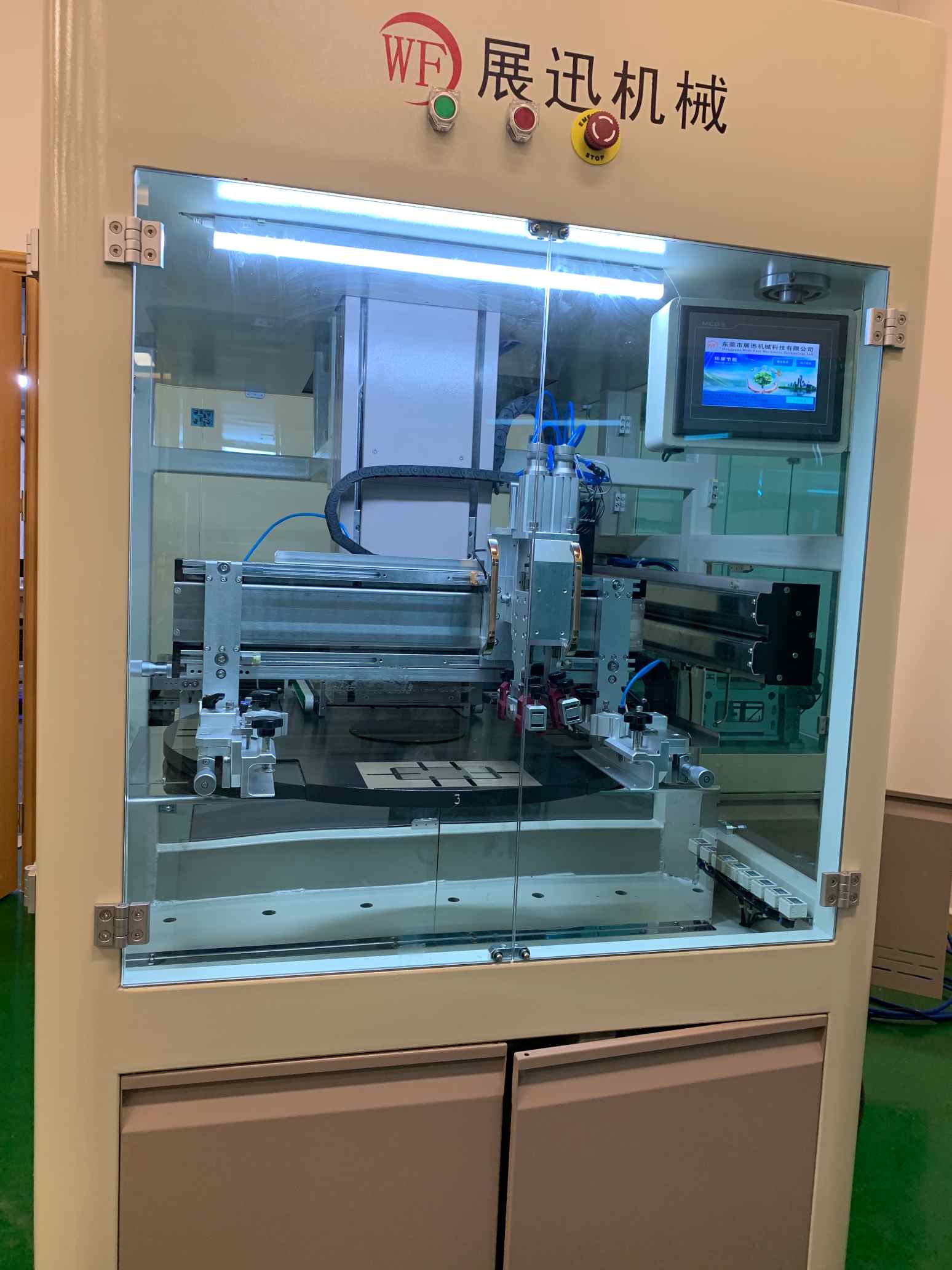 全自動4-7寸(cùn)手機蓋板轉盤絲網印刷機(模組上下料)